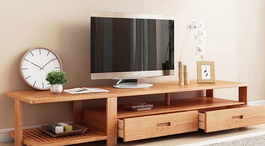 Vẻ đẹp hoàn hảo của sản phẩm khiến rất nhiều khách hàng yêu thích lựa chọn kệ tivi gỗ sồi cho phòng khách gia đình. Kệ tivi cũng được thiết kế ngăn kéo để lưu trữ đồ vô cùng tiện dụng cho người dùng.